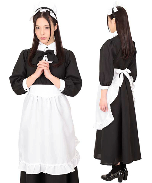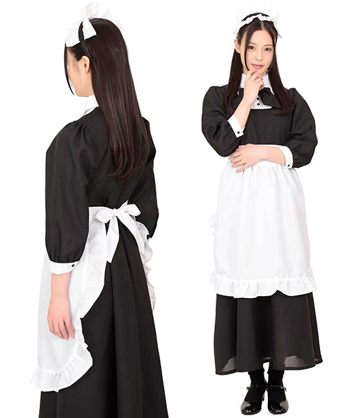 上品なメイドさんを目指すならコレ!絶妙バランスの黒×白カラーで仕上げた、クラシカルなロングワンピのメイド服コスプレ。