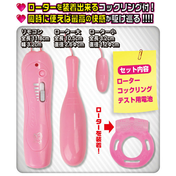 たまご型とスティック型のダブルローターに、男性補助のコックリングがドッキング!大人の遊び心たっぷりなローターセット。