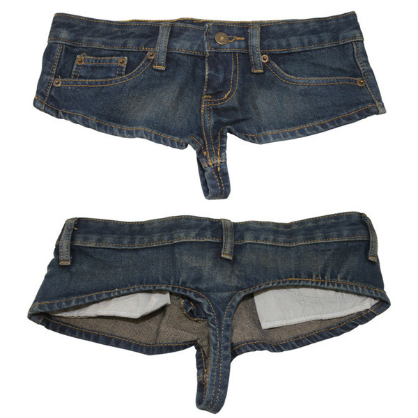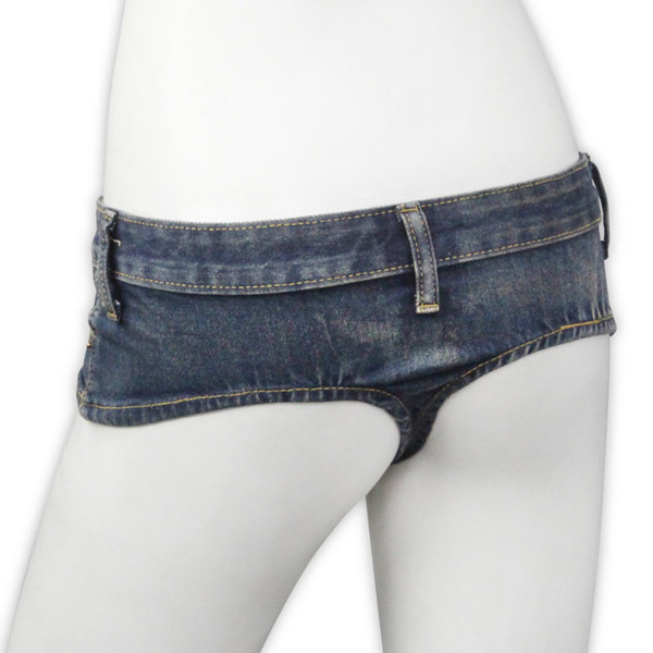まるでTバックショーツ?前も後ろも露わになるセクシーなデニムのホットパンツ。