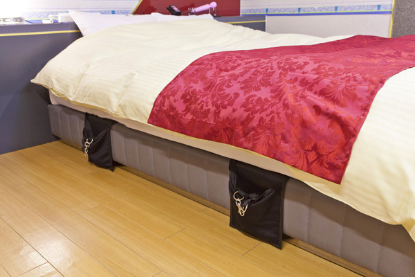 パートナーとのラブタイムは、ムードを壊さずにさり気な〜くグッズを使っちゃお!ベッド脇に設置できる収納ポケット。