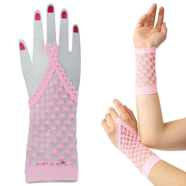 HOME > コスプレ衣装 > 小道具(ニーソックス・猫耳) > メッシュフィンガーレスグローブ ピンク