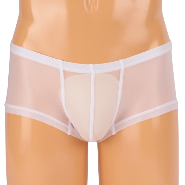 スケスケのホワイトシースルーがセクシーなメンズランジェリー!ボクサータイプでも膨らみのある立体的なフロントデザインなので、締め付けず程良いフィット感で履き心地も良好です。