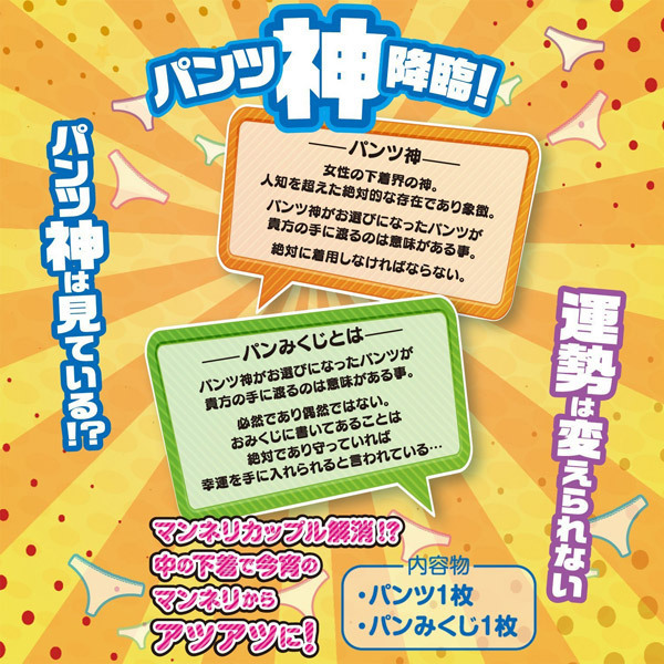 女性の下着界における絶対的な存在であり象徴である「パンツ神」に運命を委ねてみてはいかがでしょうか。