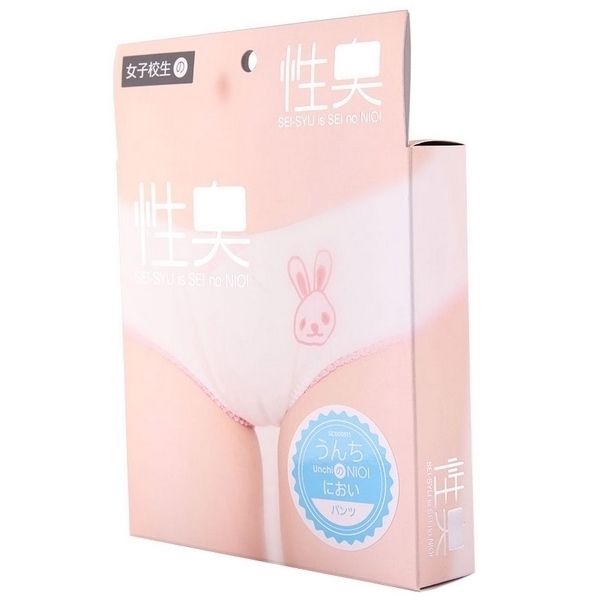 ●ウサギプリントの白パンツ●うんちのにおい付き●プロ調香師が香りを忠実に再現●匂い漏れなしの密封パック入り。