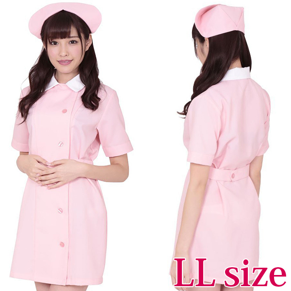 人気のナース服に大きめサイズが登場!淡いピンクで優しい印象を与えつつも、どこか大人の色気を感じさせるミニ丈仕様のナースコスプレです。