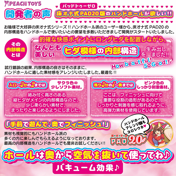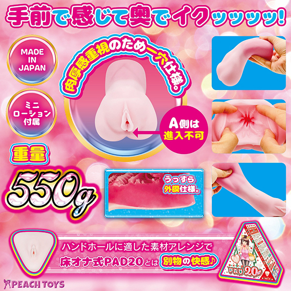床オナ式シリーズ最新作は手前で感じて奥でイクッ!前作「床オナ式PAD20(b30357)」のハンディサイズが欲しいという声から生まれた肉厚550gの非貫通オナホ。