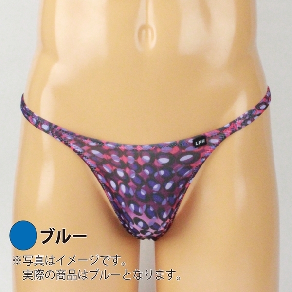 メンズ バブル柄2wayノーシームTバック (ブルー) Lサイズ
