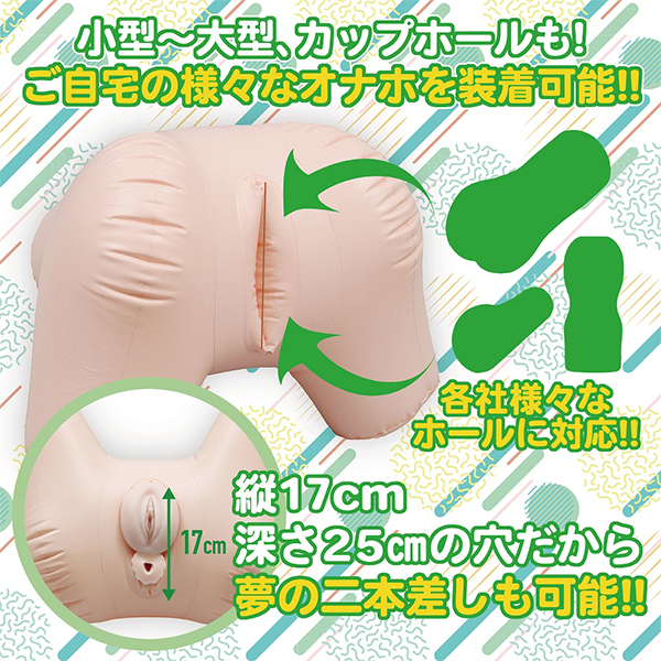 ホールを入れるポケットはビッグサイズのオナホでもセットできる余裕のある大きさです!大小オナホの2本差しもできるヒップ型のオナホ固定具♪完成形は四つん這いで突き出したヒップだから悩ましい!これさえあれば正常位から後背位に騎乗位、駅弁や対面座位も楽しめるフォルムとなっています。