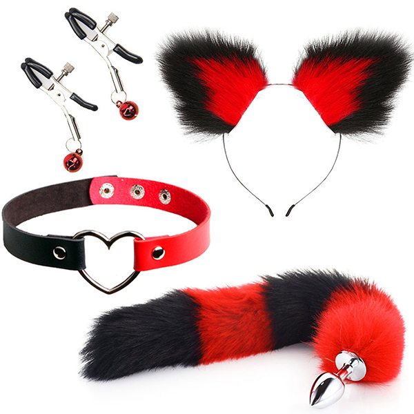 ■仕様:パッケージ:30.0×22.0×3.0cm 本体:耳カチューシャ約20cm×約20cm・首輪直径約12〜14cm・ップルクリップ(ハサミ口最大約1.6cm・長さ約5.6cm)・しっぽアナルプラグ直径約2.7cm・しっぽ長さ約40cm セット内容:耳カチューシャ、首輪、ニップルクリップ、しっぽアナルプラグ 原産国:中国 重量:本体135g