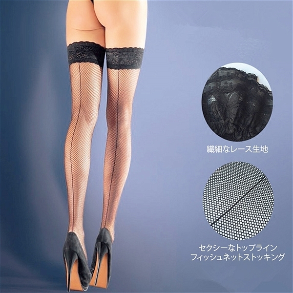 網タイプのニーハイストッキングにレースをあしらった、セクシーさ高まるストッキング。