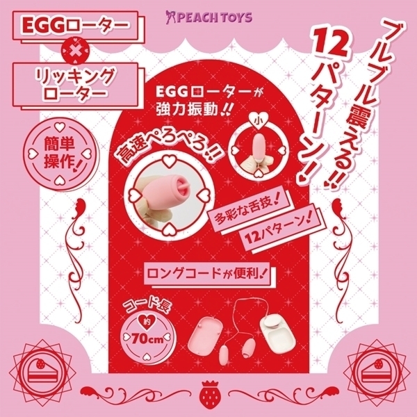 ■仕様:パッケージ:16.0×7.0×5.0cm 本体:収納時BOX10.0×6.0×3.5cm・EGGローター(小)4.6×2.0cm・リッキングローター5.0×2.5cm・コード長約70.0cm USB充電式
