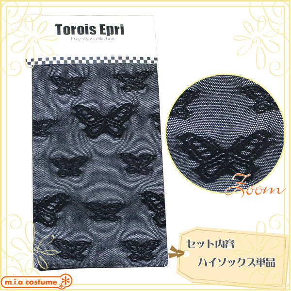 HOME > コスプレ衣装 > 小道具(ニーソックス・猫耳) > 蝶柄ハイソックス 黒 フリーサイズ