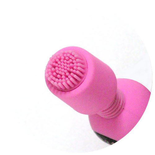 ノーマルヘッドを外すとブラシ型ヘッドが登場!二通りの使い方が出来る、コンパクトでキュートなミニ電マ(クリア)。