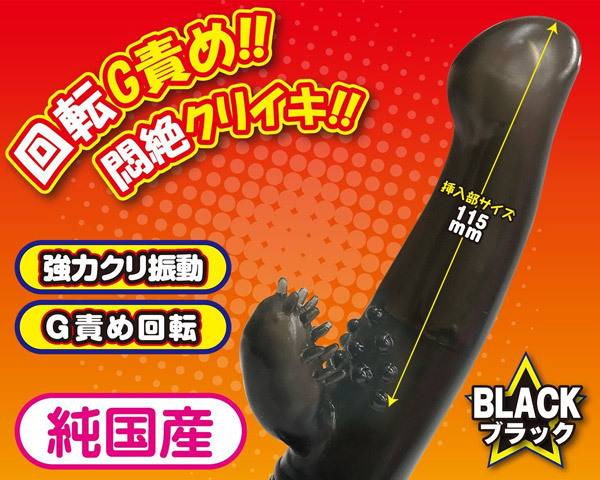 挿入部のサイズは約11.5cm、中心を曲げればGにヒット!内部をかき乱す回転で潮吹き体験も可能!さらに、クリトリス派にも嬉しい突起付きの強力振動クリバイブも装備しています。