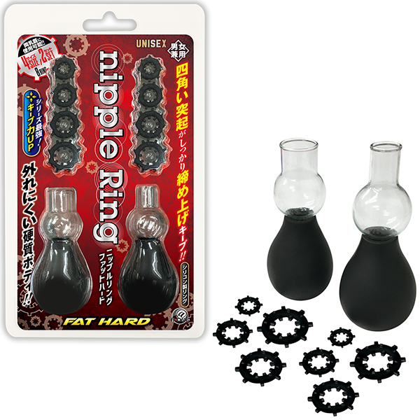 乳首責めや開発にぴったりの「ニップルリング ファットハード」です♪禁断の締め付け感が最高!シリーズ最強のキープ力が自慢で、吸引ポンプで乳首を吸い上げながらリングを装着して勃起状態を維持するなど使い方はアイデア次第♪リングを通したポンプで吸引し、スライドするだけの簡単装着で、ハードなプレイや乳首やクリの開発にも最適!それぞれ吸引口のサイズが違っているので幅広いサイズの方にお使いいただけます♪
