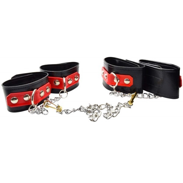 ■仕様:パッケージ:22.0×7.0×6.0cm 本体:手枷(ベルト27.0×5.0cm・チェーン17.0cm)・足枷(ベルト29.5×6.0cm・チェーン20.0cm)・ジョイントチェーン48.0cm