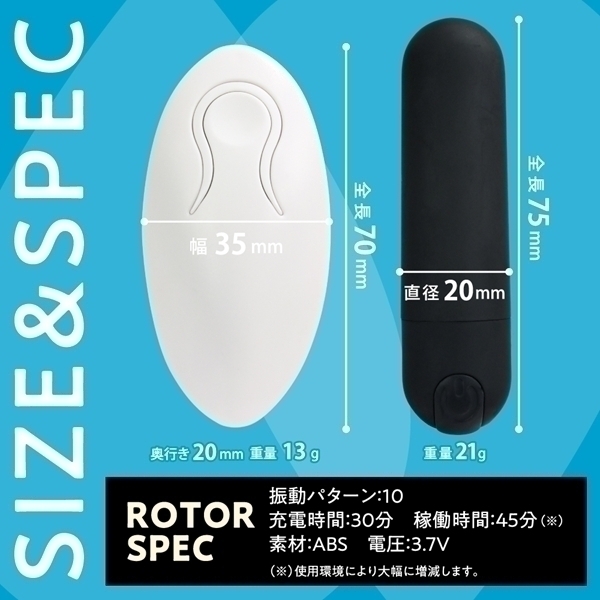 ■仕様:パッケージ:ヘッダー14.5×8.8×3.0cm ローター 7.5×直径2.0cm リモコン 7.0×3.5×2.0cm USB充電式
