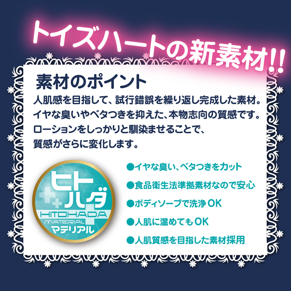 ローションの馴染み方で質感が変化する、人肌質感の新素材ヒトハダマテリアル採用!極限まで細く高く作り上げた繊細なヒダギミックで刺激と興奮を与える♪頑張る自分へのご褒美に、本物のような粘膜質感でワンランク上のプレイを是非どうぞ。