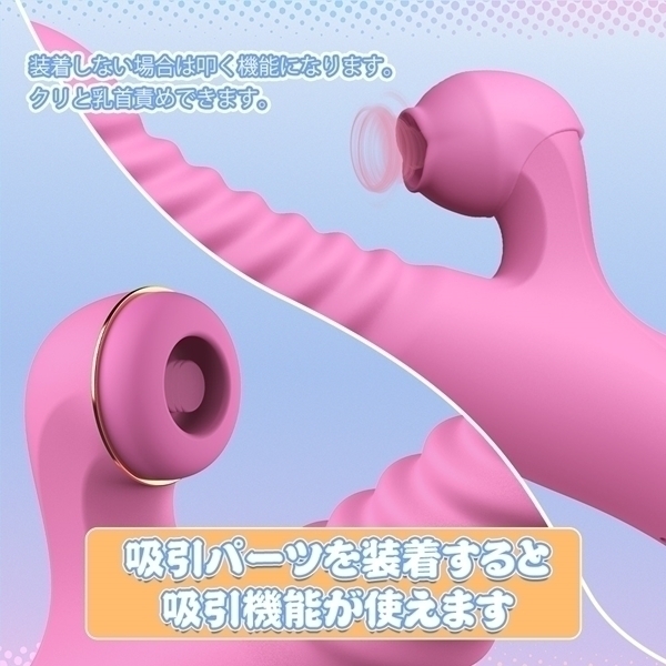 7種の伸縮振動モード、7種の叩きパターンでナカ・ク●同時開発しちゃいましょう!ク●刺激部分のシリコンカバーが取り外し可能でシリコンカバーを外すと4000回/分の叩き機能になり、シリコンカバーを付けると吸引機能になるのが特長です。