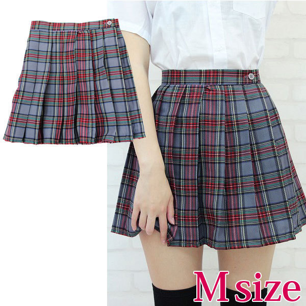 女子校生コスプレの定番アイテム!キュートなグレーのチェック柄プリーツスカート(M)。