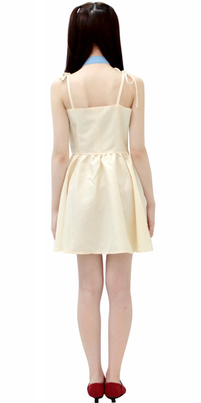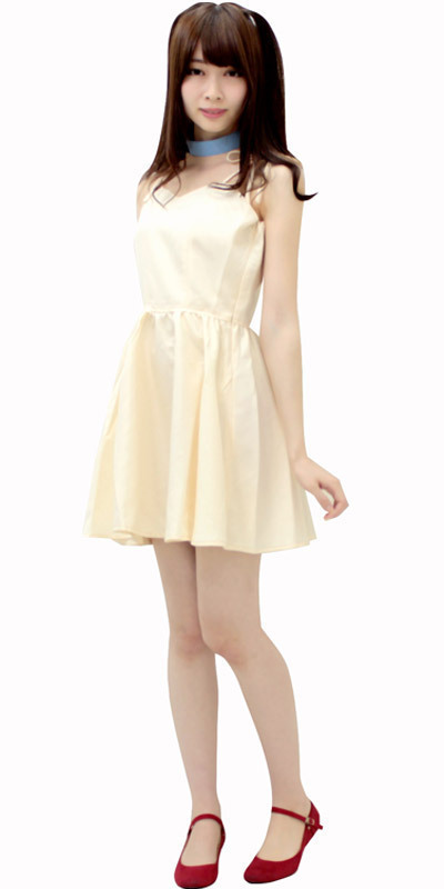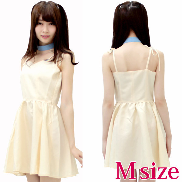●パステルイエローのキャミワンピース●優しい色合いの水色チョーカー●長さ調節可能な肩紐リボンで可愛らしさをプラス●クビレをキュッと見せるウエスト切替デザイン●ふんわり広がるフレアスカート●横ファスナー&バスト部に裏地付き●チョーカーはマジックテープで簡単に着脱可。