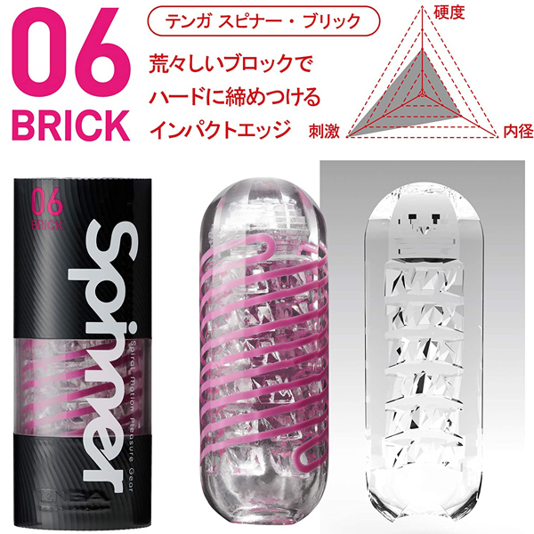 洗って繰り返し使えるお洒落なテンガ「テンガスピナー」に新作登場!ストロークに連動して捻り運動が加わる同シリーズの06ブリックは、ダイヤのように角ばったブロック状の突起が全体を締め付ける高刺激構造。