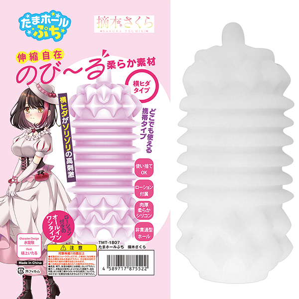 コンパクトで持ち運びやすい非貫通オナホです♪タマトイズ専属Vtuber「摘木さくら」とのコラボ商品で、横ヒダ構造が特徴!伸縮自在な柔らか素材を使用し、快適な使用感を実現しています。
