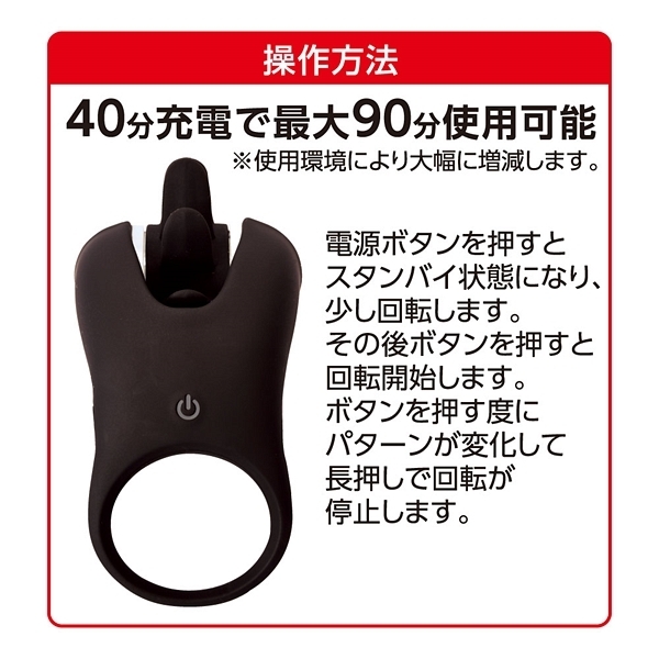 指にはめたり、リングとして着用してク○や乳首を刺激!リバース回転を繰り返す動きを含む10パターンアクション。