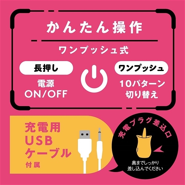 マンネリしない多彩な高速ペロペロ10パターン!最大毎分約150回の高速ペロペロ!防水機能IPX6等級。