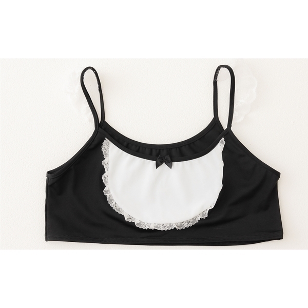 短い丈でバストラインを可愛く、綺麗に魅せるメイド風デザインのクロップトップキャミソールです。
