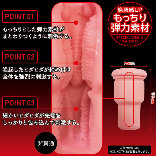 ピストンを極めた電動オナホールNOL HOTPIS交換用ホール第一弾は抵抗するように締め付ける乙女の深部を再現!もっちりとした弾力素材が、まとわりつくように刺激する挿入部。